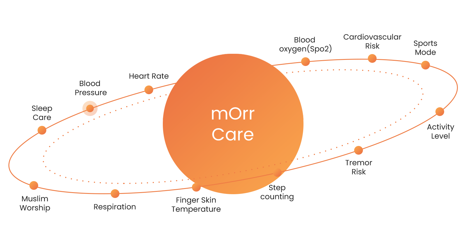 mOrr Care is a powerful app that enables users to easily initiate biometric measurements and monitor their results over time. The mOrr group will roll out its features in several phases. In the first phase, eight essential functions are offered: blood pressure, sleep, heart rate, blood oxygen, steps and calories, finger skin temperature, and respiration.